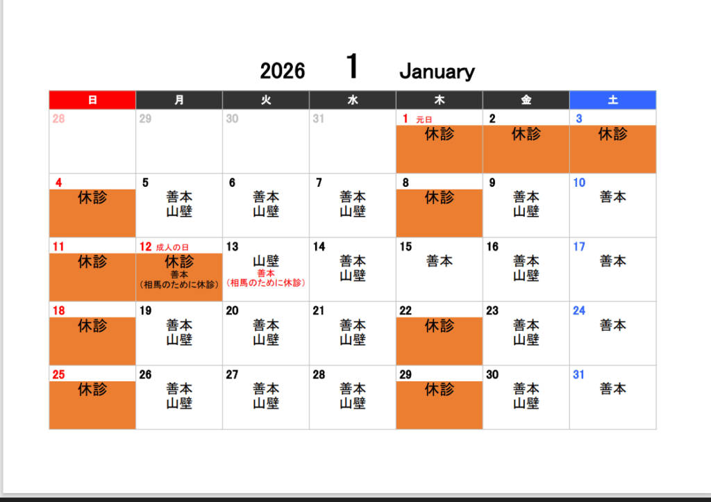 令和8年は1月5日月曜日より診療が開始します。今年も宜しくお願い致します。